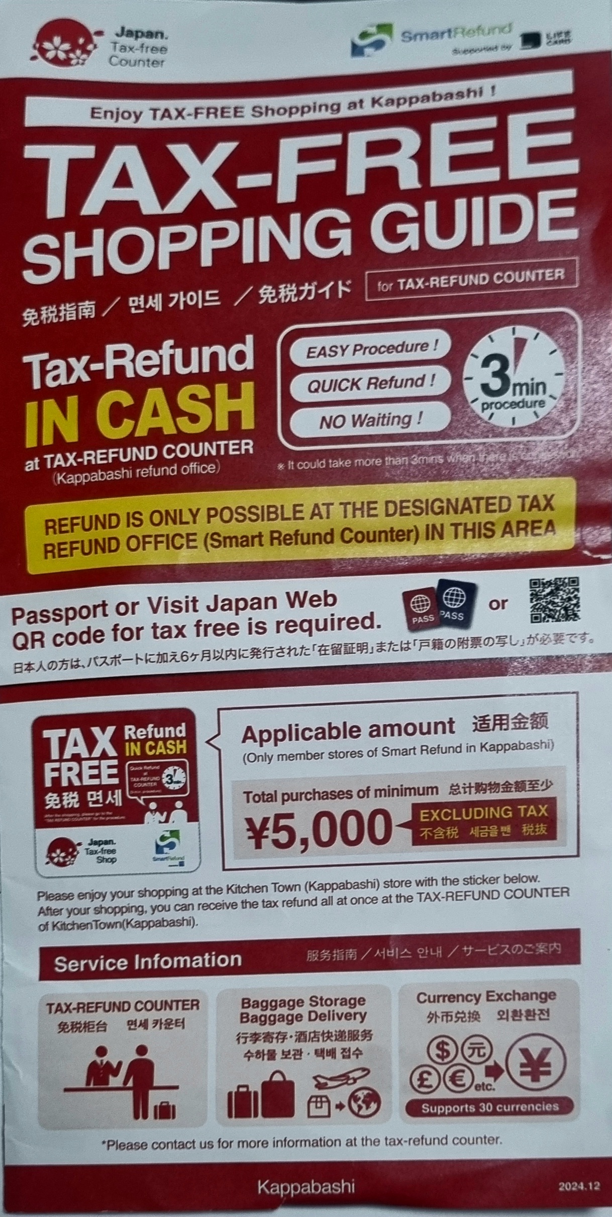 갓파바시 도구거리 택스리펀 카운터 위치 (Kappabashi tax-refund counter)
