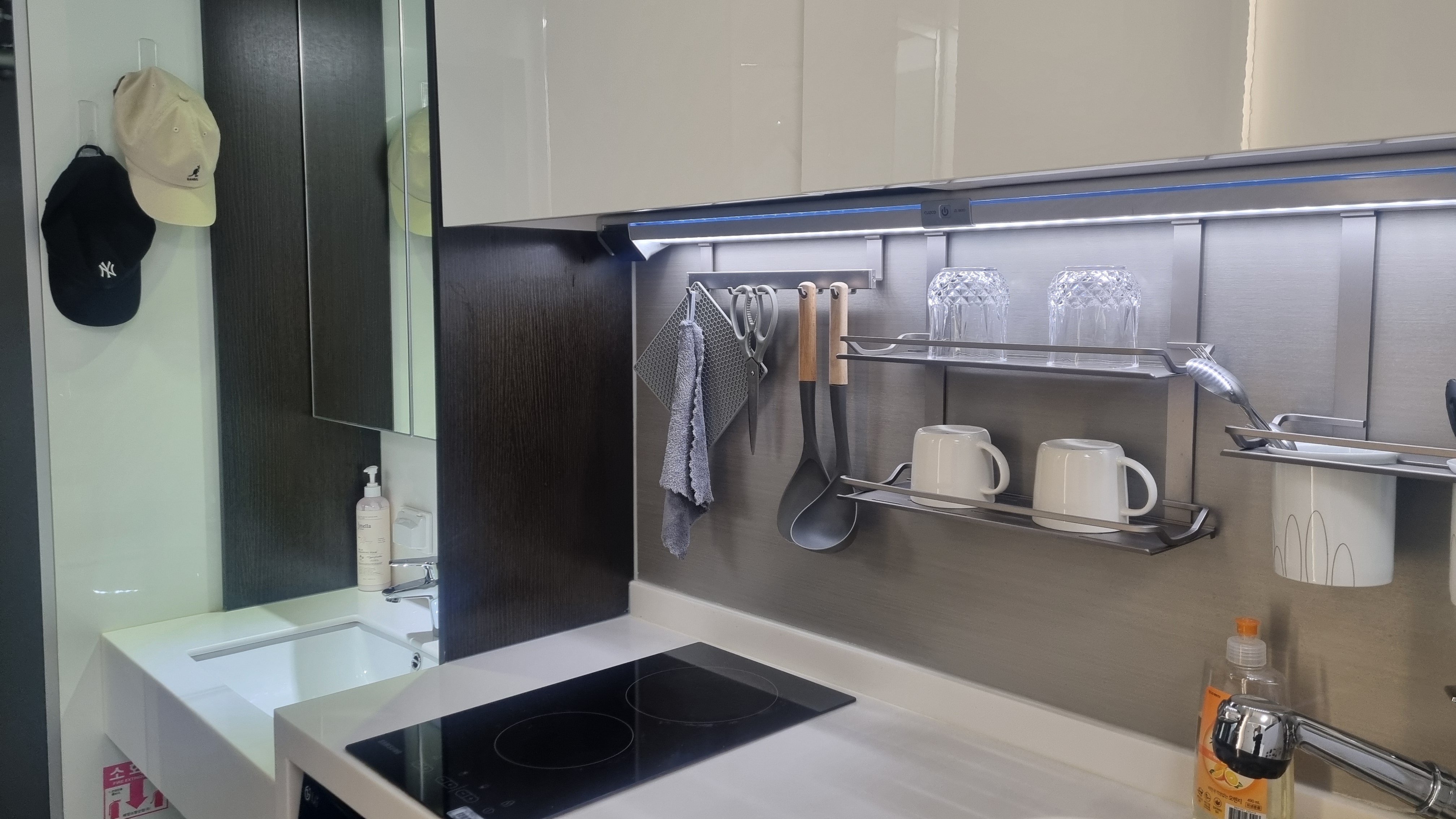스토브 밑에 세탁기도 있어 간단히 속옷이나 양말 세척도 가능하다.