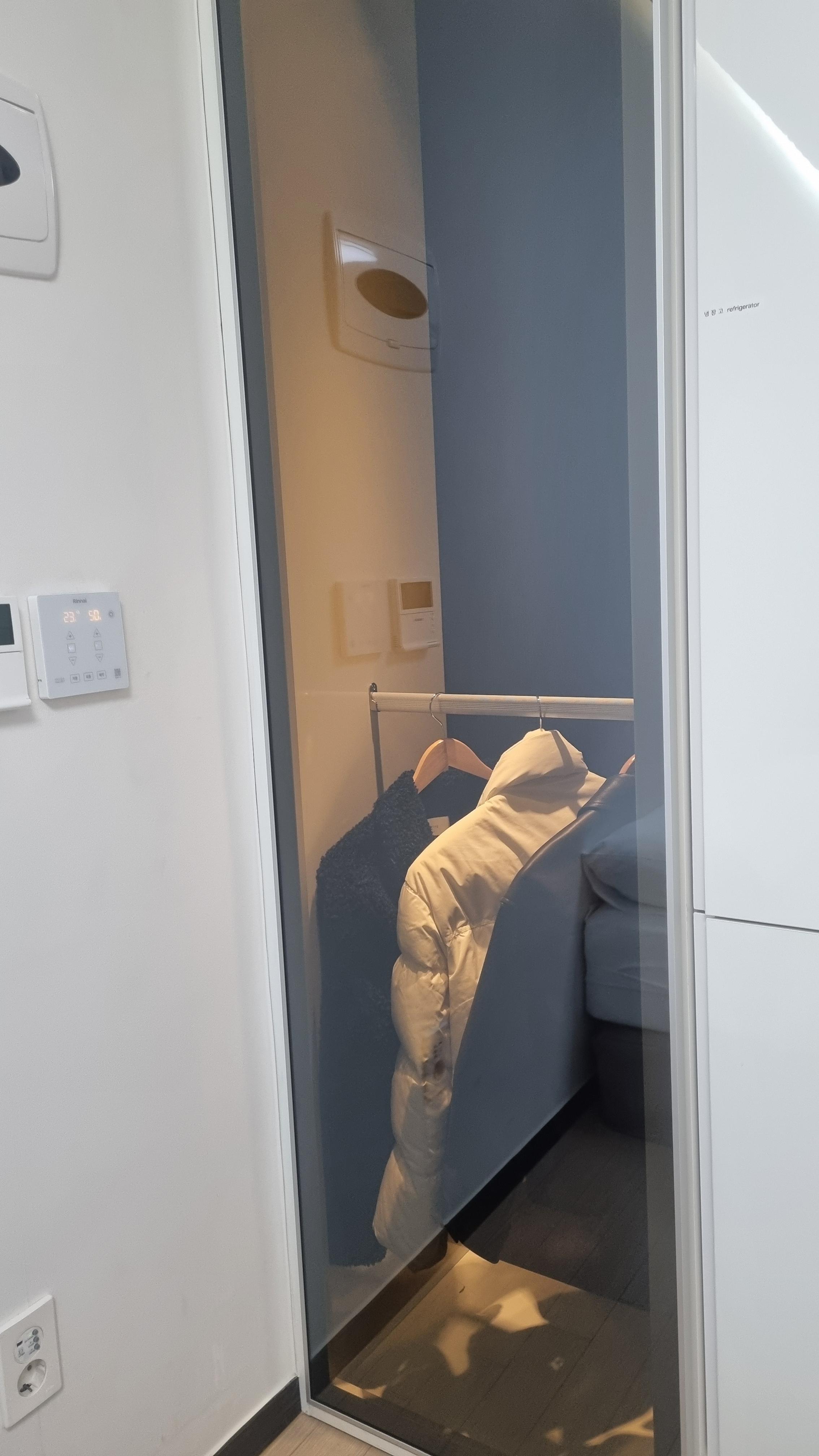 작은 옷장이 있어 방에서 음식을 먹어도 냄새가 배지 않아 좋다.