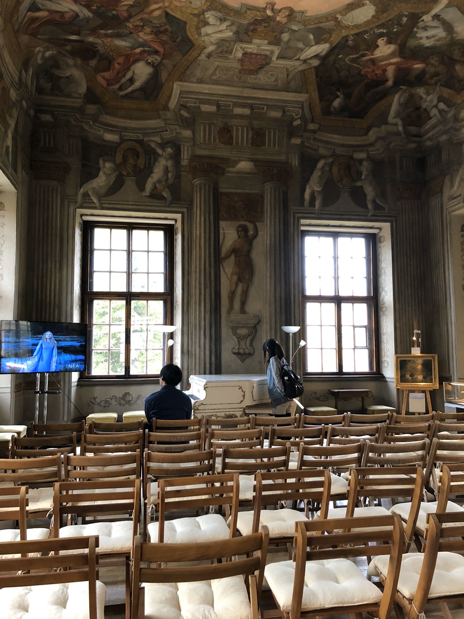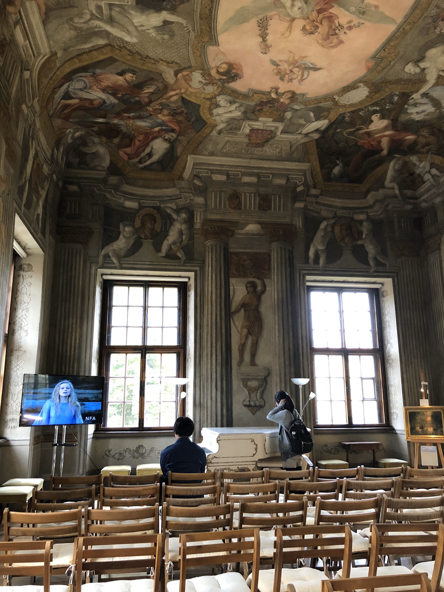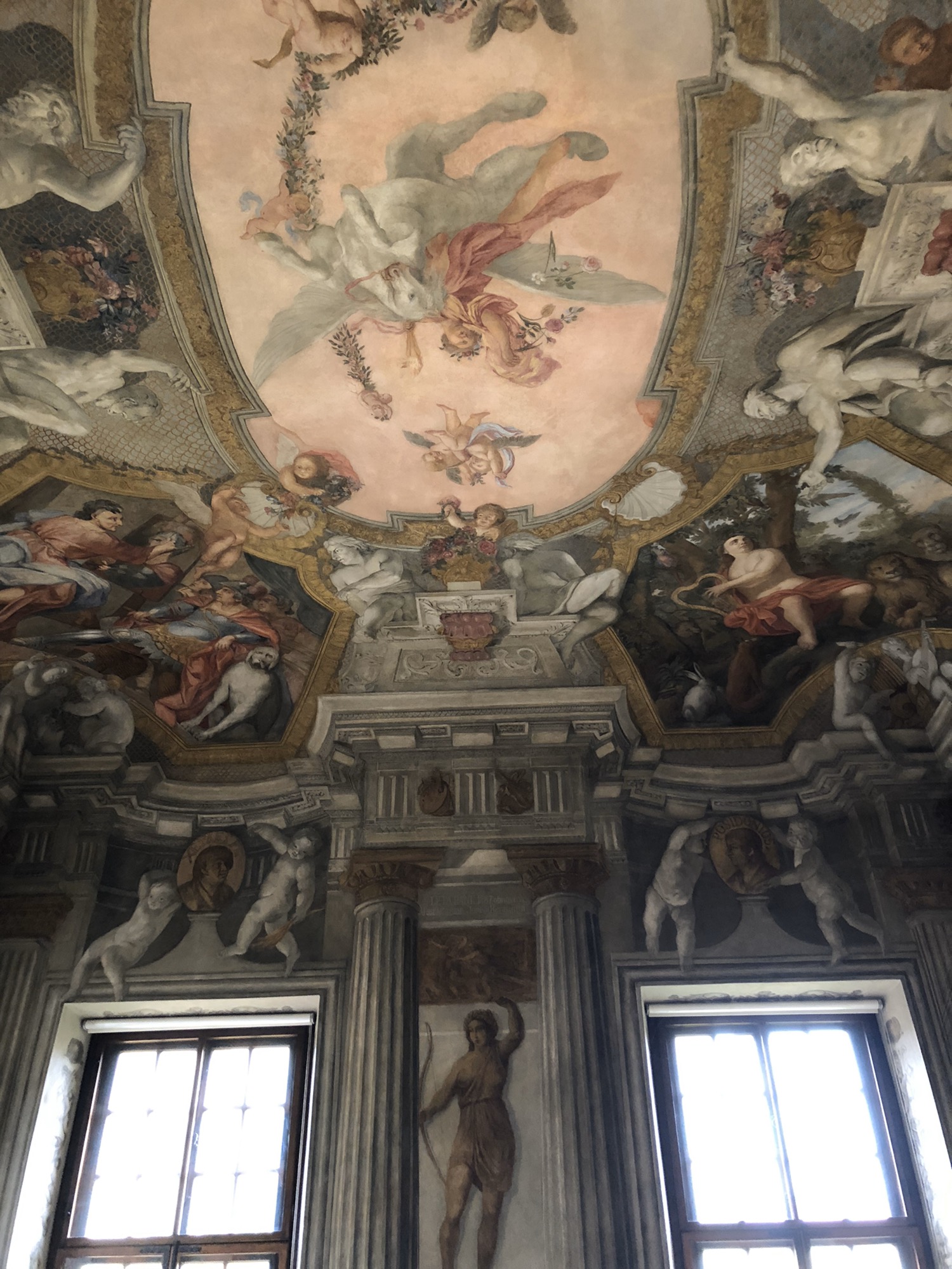 그 소리를 따라 안쪽으로 걸어가다보면 큰 공간을 따라 천장의 화려한 프레스코화 그림을 감상할 수 있다.